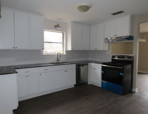 Check out this newly renovated, spacious 3-bedroom 2-bath brick home. This property features carpet and vinyl flooring throughout! It has a 2-car carport with additional storage for your convenience. This property has a very open floor plan with lots of natural lighting! With a large living room that looks into an open kitchen, and an attached dining area, this property would be great for entertaining and offers a lot of space. The kitchen comes equipped with a stove and dishwasher. There are washer/dryer connections, central heat and air, and blinds! Last but not least, this home features a large fenced-in backyard!! Don't miss out on this property - it won't stay long!