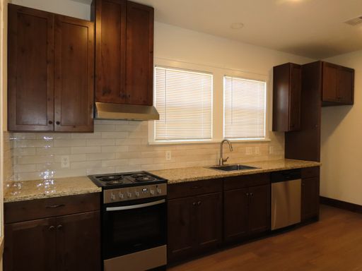 This newly renovated warm and inviting home offers classic detail in every room, with hardwood trim and wood laminant flooring throughout. The spacious living room features a delightful mock fireplace. The kitchen features updated granite counter tops, stainless steele electric oven/ range and dishwasher. This home also offers the convenience of a laundry area with full size washer and dryer connections. The large chain-link fenced backyard is easily accessed and includes a storage bulilding. There are so many nice attributes to this charming home. It is a must-see! Take a tour today and submit your application before it's gone!